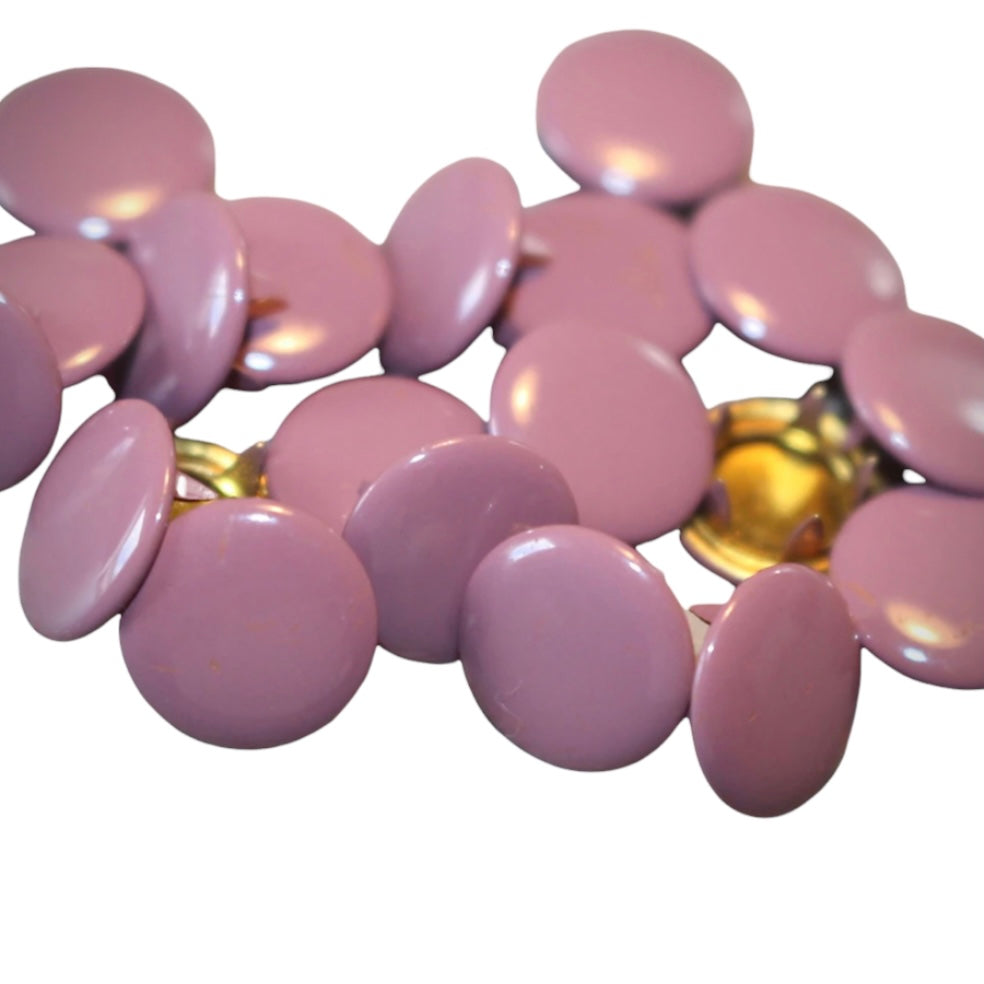 Lækre metalknapper i farven Gammelrosa. Bemærk at når du bestiller kommer knapperne som hele sæt. Et helt sæt indeholder 2 x spidser (en i farve og en i metalfarve), 1 x han og 1 x hun.