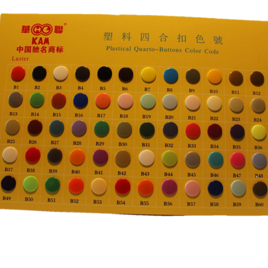 Knapperne der måler 12,4 mm i diameter kaldes str. 20 eller T5 (de er samme størrelse som Prym). Vi fører som de eneste i Danmark hele KAMs farveudvalg på hele 60 forskellige farver, så der er noget for enhver.